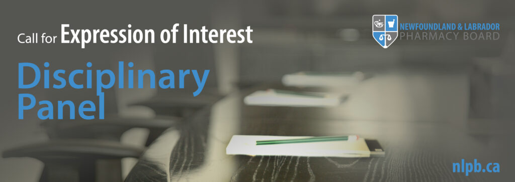 The Newfoundland and Labrador Pharmacy Board (NLPB) is currently seeking NLPB-registered pharmacists to serve as members of NLPB’s Disciplinary Panel. Members of the Disciplinary Panel are called on occasionally to sit on three-person adjudication tribunals to hear complaints regarding registrants who are referred by the Complaints Authorization Committee.