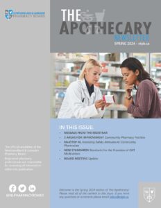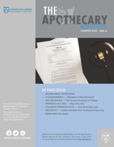 The Apothecary is the College of Pharmacy of Newfoundland and Labrador’s (CPNL) official newsletter published three to four times per year that provides updates on the work of CPNL and issues affecting pharmacy practice in the province. recent issues Summer 2024 Spring 2024 The Apothecary Archives 2023 Winter 2023 Summer 2023 Spring 2023 2022 Winter 2022 fall 2022 Spring 2022 2021 Fall 2021 Summer 2021 Spring 2021 2020 FALL 2020 WINTER 2020 2019 Spring 2019 WINTER 2019 2018 Fall 2018 Summer 2018 Spring 2018 2017 Fall 2017 Summer 2017 Spring 2017 2016 Winter 2016 Fall 2016 Spring 2016 2015 Winter 2015 Summer 2015 2014 Winter 2014 Fall 2014 Summer 2014 Spring 2014 2013 Fall 2013 Summer 2013 Spring 2013 2012 Winter 2012 Fall 2012 Summer 2012 Spring 2012 2011 Winter 2011 Fall 2011 Summer 2011 Spring 2011 2010 Winter 2010 Fall 2010 Summer 2010 Spring 2010