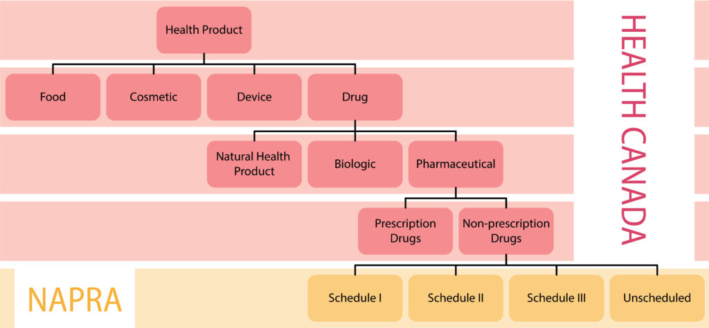 Health Canada and the National Association of Pharmacy Regulatory Authorities (NAPRA) both have roles related to drug scheduling in Canada. These roles are separate and distinct, with each organization performing specific functions within the drug scheduling process. The chart below outlines the classification system used by Health Canada and NAPRA.