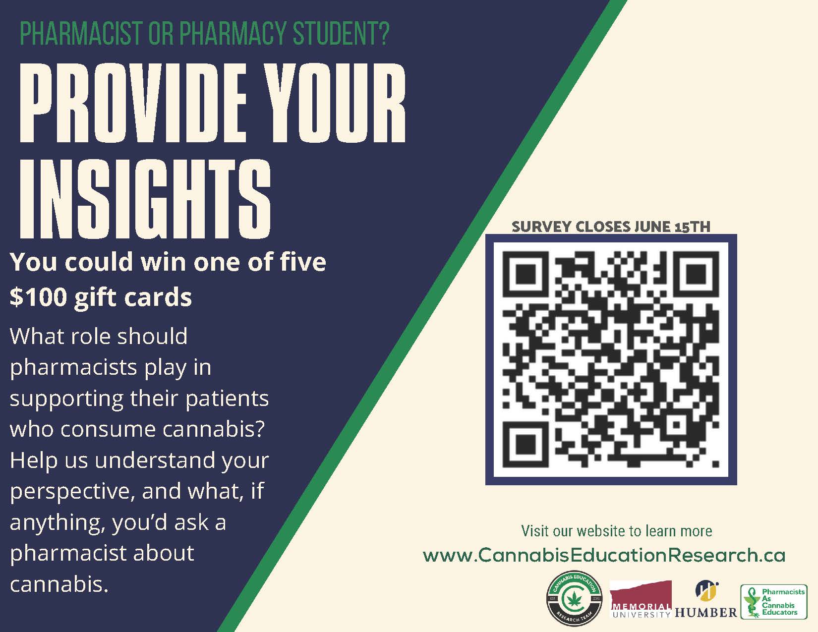 Pharmacists and pharmacy students can contribute their perspectives by completing a survey at: https://www.cannabiseducationresearch.ca/