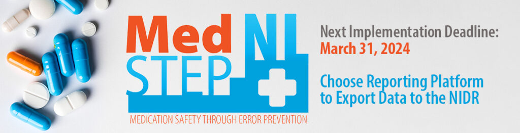 The next implementation deadline for the MedSTEP NL program is to choose a reporting platform to export data to the National Incident Data Repository (NIDR) by March 31, 2024.