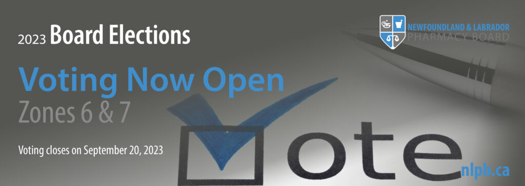 Voting is now open for the Newfoundland and Labrador Pharmacy Board (NLPB) Zone 6 and Zone 7 elections. The elections are being held electronically through a secure, confidential elections platform.